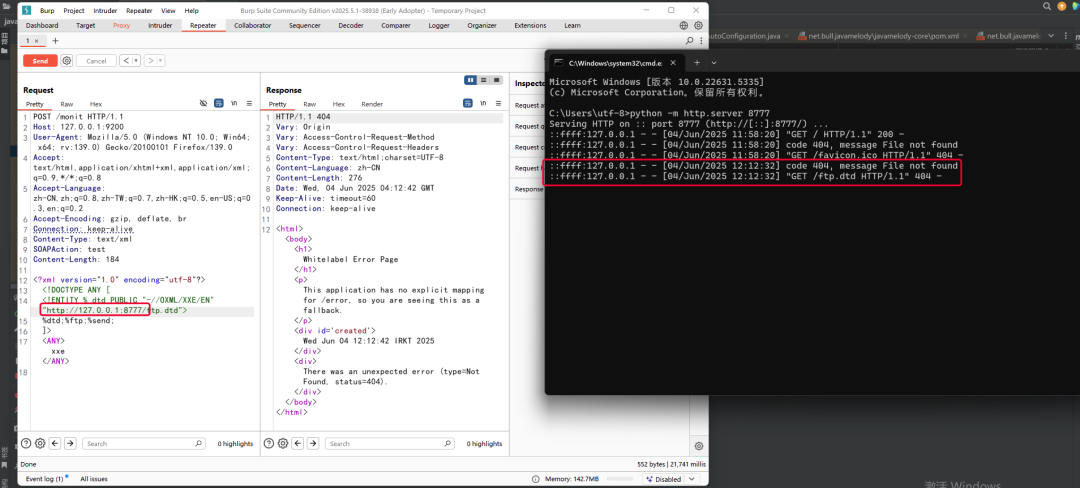 4.3.2直接构造XXE参数进行成功HTTP加载