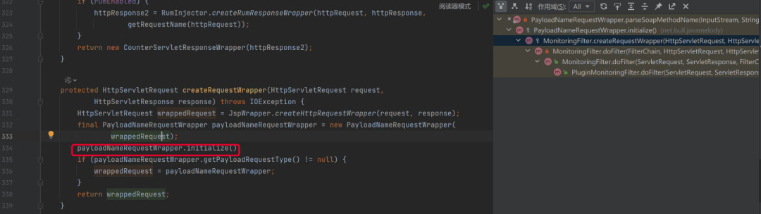 继续查看调用关系MonitoringFilter.java中createRequestWrapper也是在做初始化操作