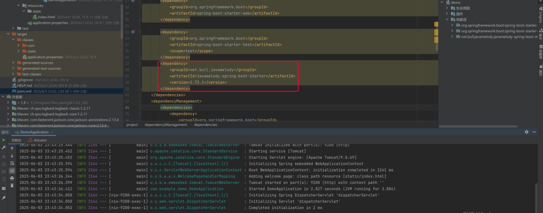 查看项目部署说明:POM.xml引入依赖,访问http://localhost:port/monitoring进入监控页面