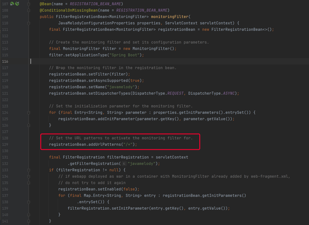 Javamelody-spring-boot-starter:定义了一个名为monitoringFilter的Spring Bean,用于注册JavaMelody的监控过滤器(MonitoringFilter),看到任意路由都会经过该Filter处理使用1.74.0版本JavaMelody组件的Web应用都可以利用XXE漏洞