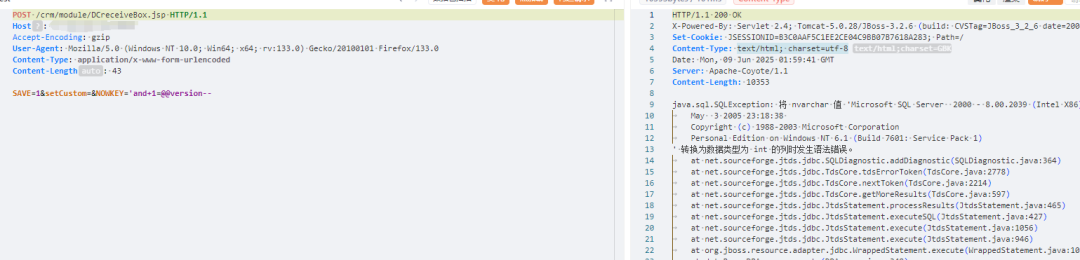 博斯外贸管理软件V6.0 DCreceiveBox.jsp 接口存在SQL注入漏洞,未经身份验证的远程攻击者除了可以利用 SQL 注入漏洞获取数据库中的信息(例如,管理员后台密码、站点的用户个人信息)之外,甚至在高权限的情况可向服务器中写入木马,进一步获取服务器系统权限。