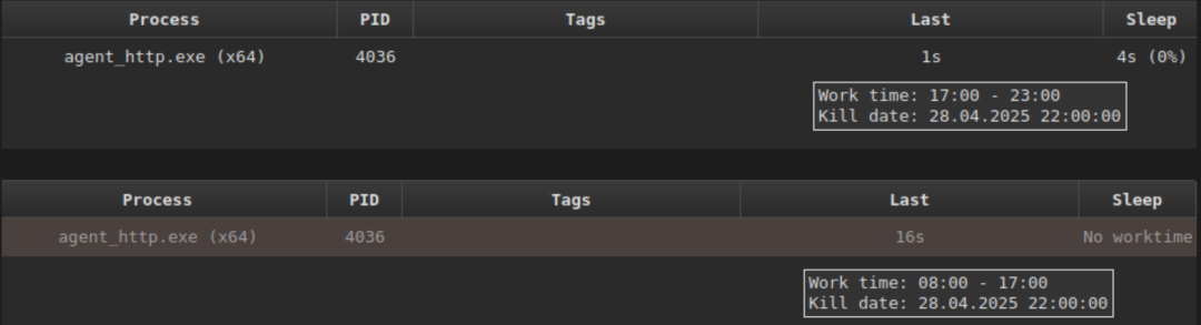 AdaptixClient 用户界面分为两部分。界面顶部显示代理及其任务。界面底部显示与您交互的每个功能的选项卡。您可以点击这两部分之间的区域并根据需要调整其大小。