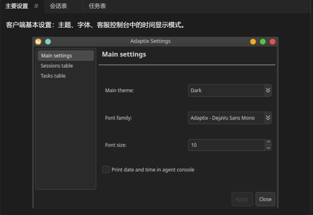 客户端基本设置:主题、字体、客服控制台中的时间显示模式。