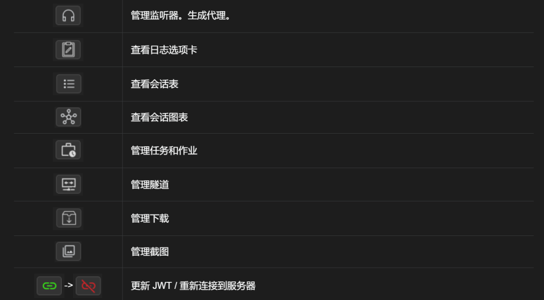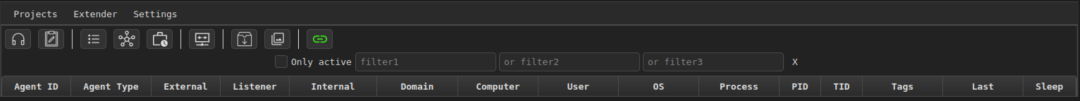 AdaptixClient 顶部的工具栏可快速访问常见的 Adaptix 功能。