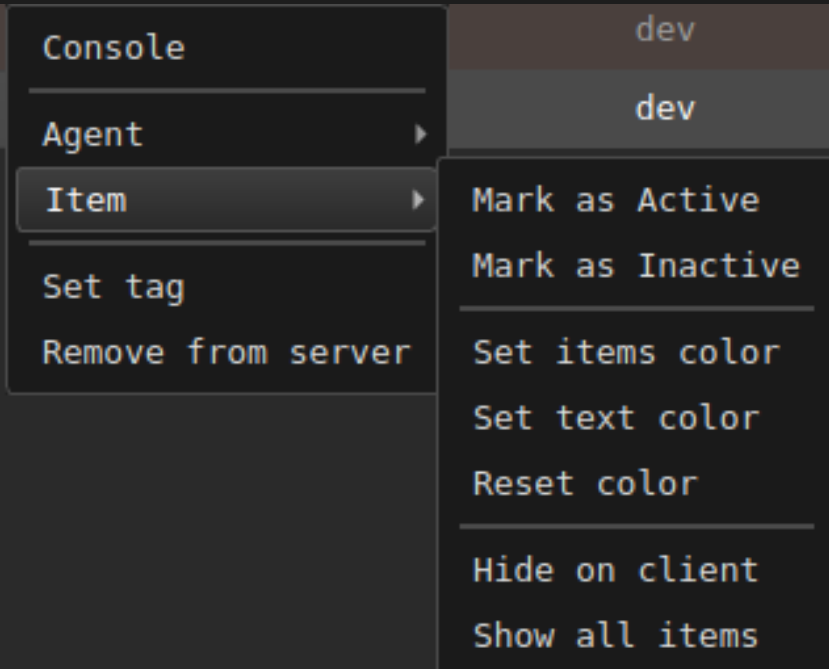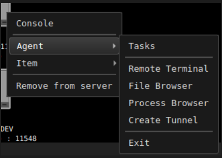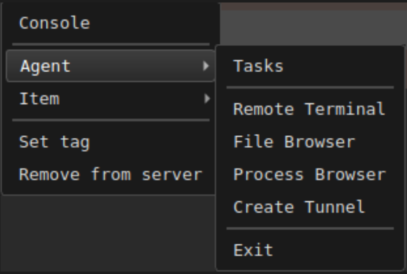 双击代理行将打开代理控制台。代理可以通过会话表的上下文菜单进行管理。