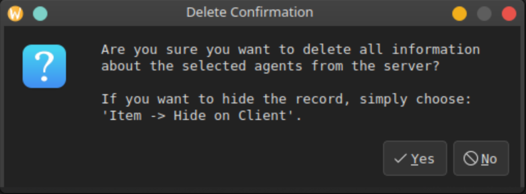 通过会话表菜单的“从服务器中删除”菜单项从服务器中删除代理时,现在需要确认该操作。