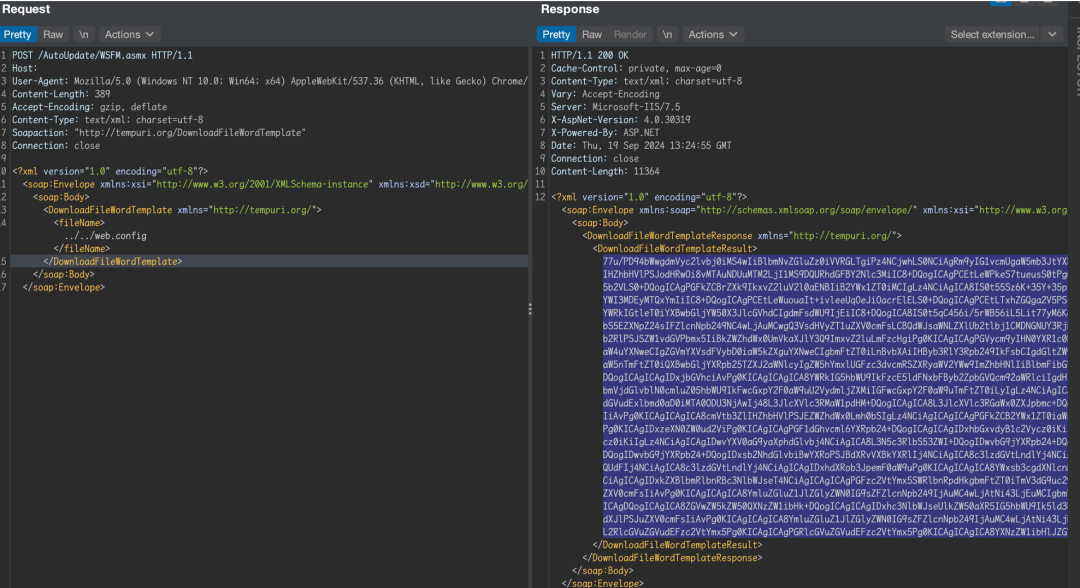 唯徳知识产权管理系统 DownloadFileWordTemplate 接口存在文件读取漏洞,未经身份验证攻击者可通过该漏洞读取系统重要文件(如数据库配置文件、系统配置文件)、数据库配置文件等等,导致网站处于极度不安全状态。