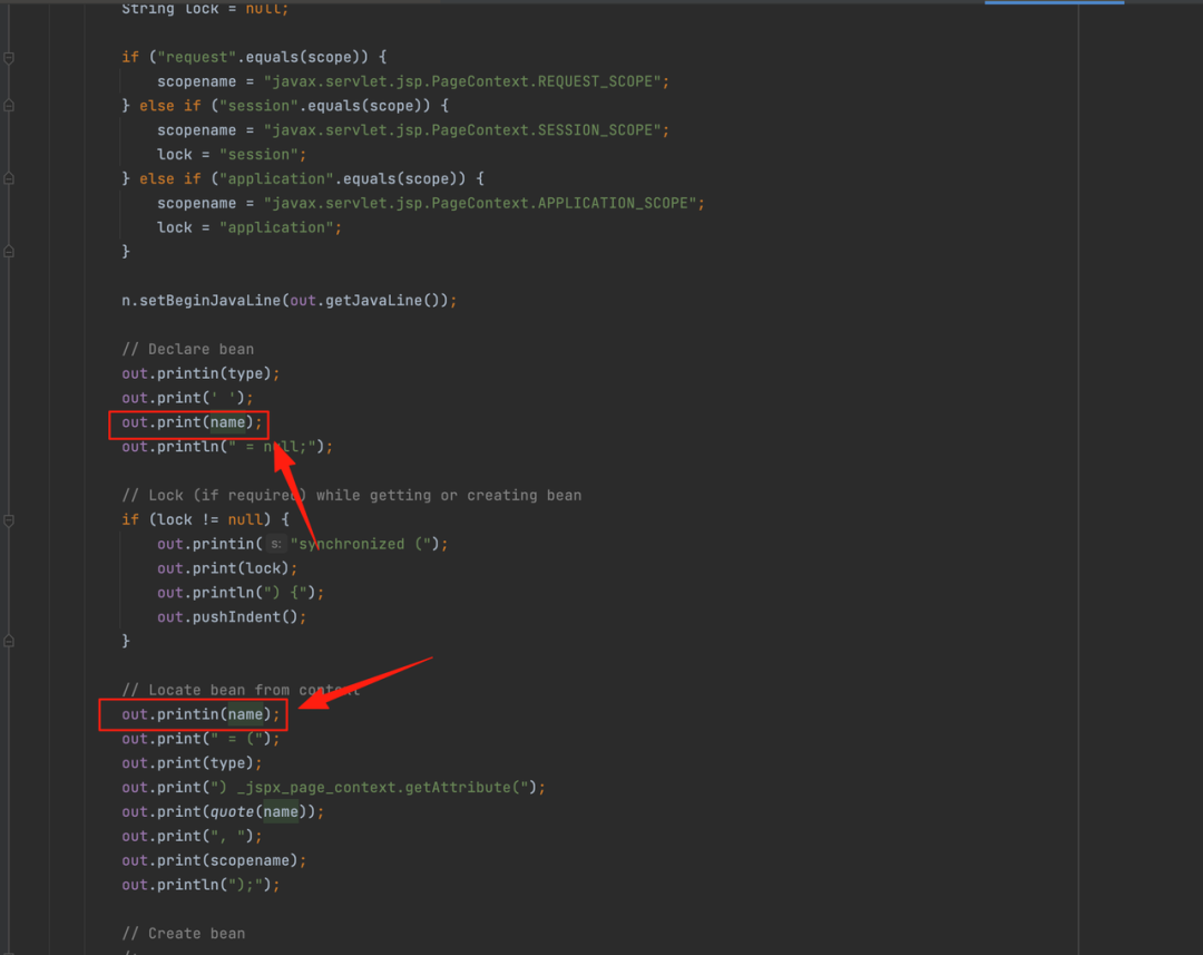 在 jsp 中,和 php 会有所不同,jsp 会 <%!%>
