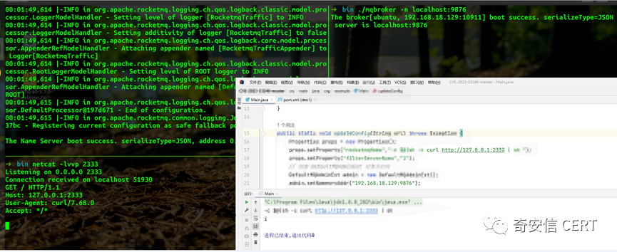 目前,奇安信CERT已成功复现Apache RocketMQ远程代码执行漏洞(CVE-2023-33246)POC,截图如下: