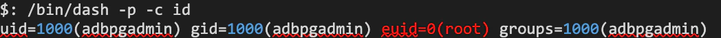 $: echo ‘id’ > /home/adbpgadmin/i_pipe; timeout 1 cat /home/adbpgadmin/o_pipe
