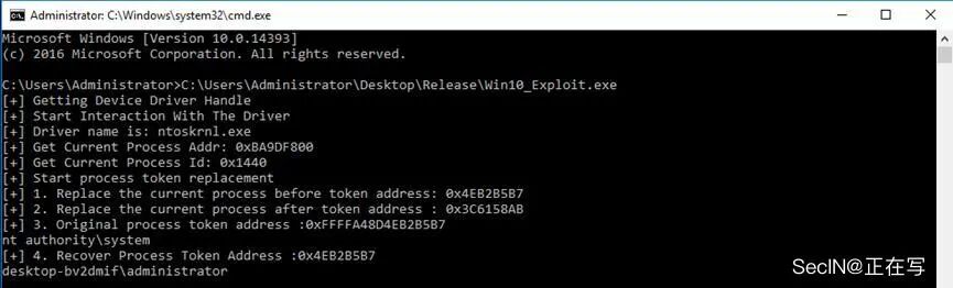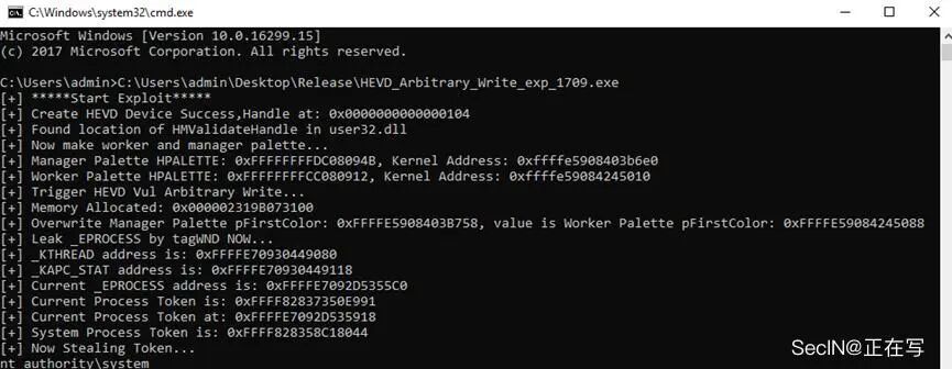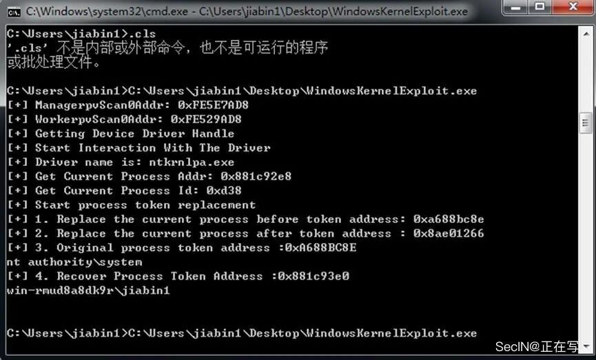 操作第一个 hManager,可以替换第二个 hWorker->pvScan0地址,再通过第二个 hWorker来将system进程的token写入当前进程。