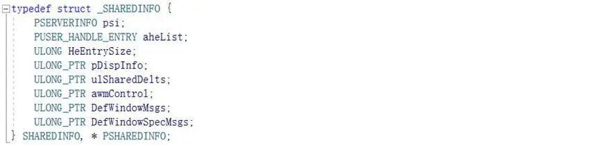 在user32.dll中有一个全局变量gSharedInfo,其成员aheList为一个USER_HANDLE_ENTRY的句柄表。