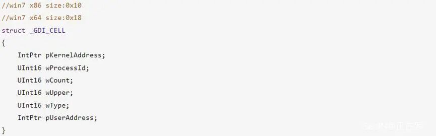 GdiSharedHandleTable的本质是一个指向GDICELL结构体数组的指针。