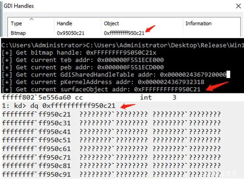 至此,我们就可以成功泄露bitmap内核对象的地址啦!