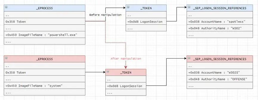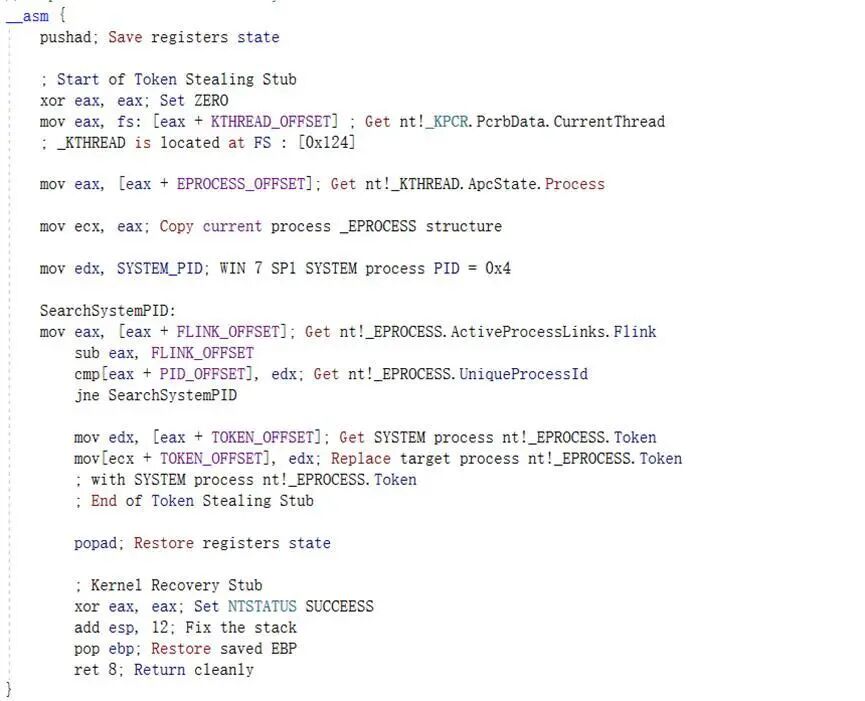 将当前进程 EPROCESS 中存储的 Token 指针替换为 System 进程的 Token 指针。