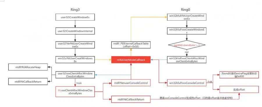 上图时CreateWindowEx到内核真正调用xxxCreateWindowEx函数的过程,xxxCreateWindowEx中回到tagWND的cbWndExtra字段进行判断。