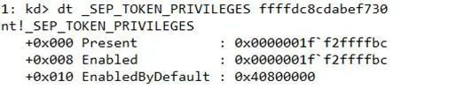 将Present和Enabled的值更改为SYSTEM进程令牌的所有权限。
