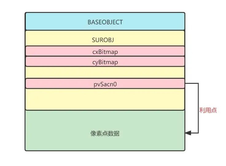 上图,在网上流传的比较火,应该是国外某位大神逆出来,再此稍稍瞻仰一下。有了这个我们就可以通过桌面堆来泄露bitmap的内核地址啦。