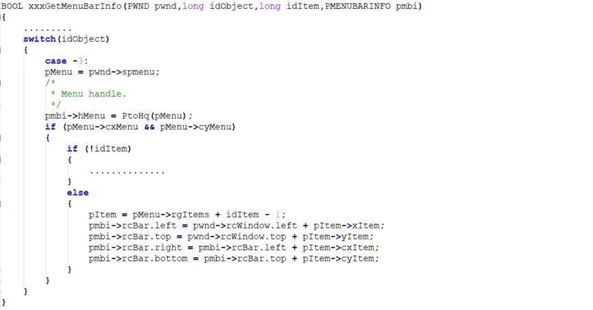 – Menu系列(最新):GetMenuBarInfo,当其第二参数、第三参数分别设置成-3,1的时候,可以借助menu bar info获取16字节的读取能力。