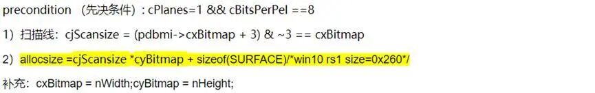 Bitmap对象的地址在RS1中是通过AcceleratorTable获取到的。先申请大量的AcceleratorTable对象然后释放其中一个,接着申请大小相等的bitmap对象。通过泄漏AcceleratorTable对象的地址,即可等到bitmap的内核地址。(内存大小计算方式将在下一章节进行详细阐述)