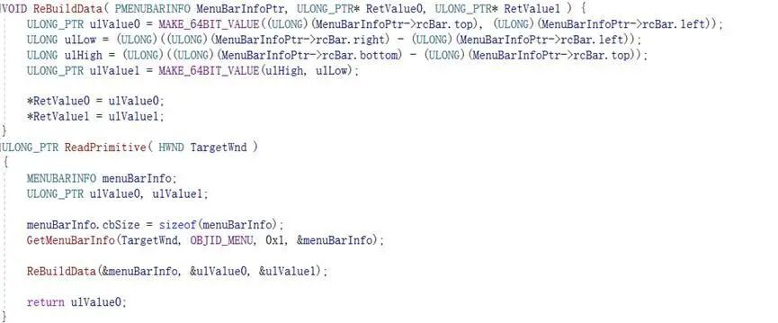 一般仅需tagMenuBarInfo.rcBar.left 和 tagMenuBarInfo.rcBar.top读取指定地址的8个字节的数据。