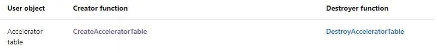 函数 CreateAcceleratorTable 用来在内核中创建快捷键对应表。