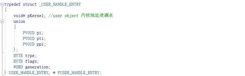 因此可通过USER_HANDLE_ENTRY去泄露Accelerator table的内核对象地址。