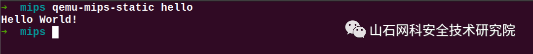 #include <stdio.h>int main(int argc,char *argv[]){ printf("Hello World!"); return 0;}//mips-linux-gcc hello.c -o hello --static