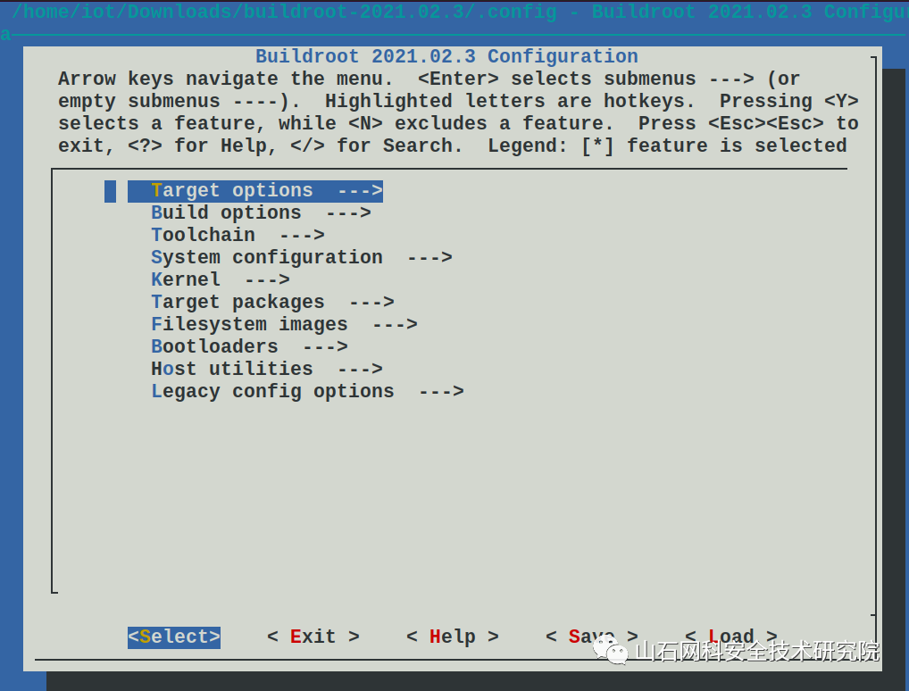 $ sudo apt-get insatll install libncurses5-dev -y$ tar zxvf buildroot-*.tar.gz$ cd buldroot*$ make menuconfig #配置选择嵌入式架构