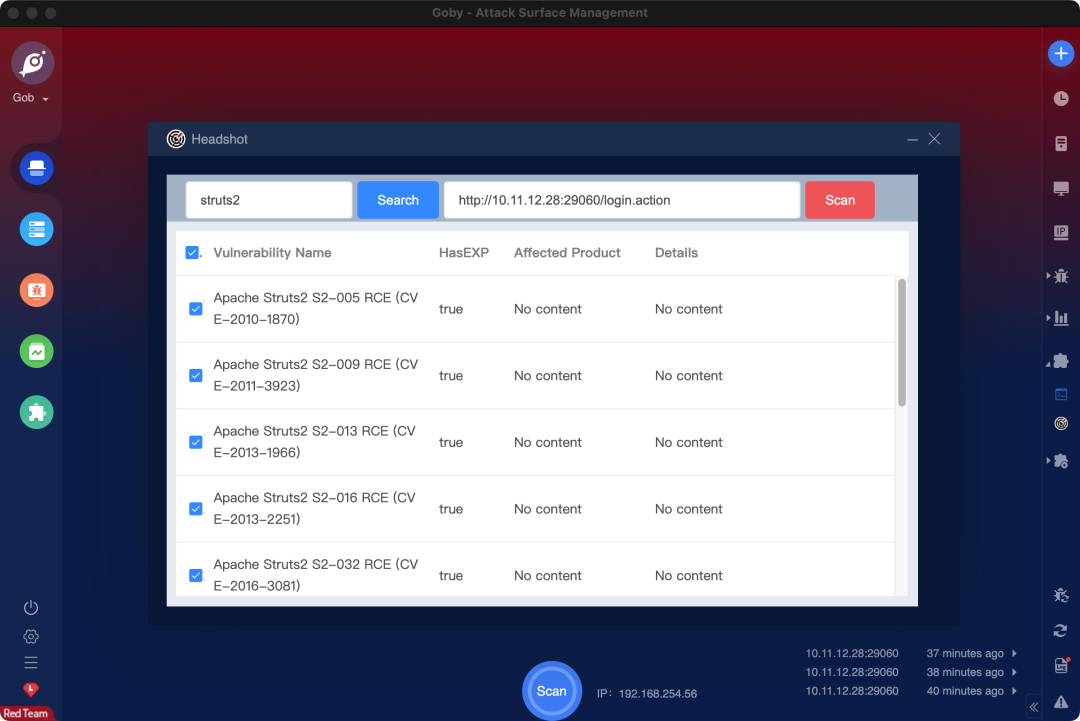 最后大家可以 Goby 客户端中的扩展程序一键下载体验 Headshot(见文末视频教程),Respect~~(尝鲜体验此插件需前往官网 gobysec.net 或点击文末原文下载 Goby Beta 2.4.9