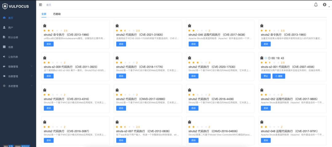 )上,针对Struts2漏洞有着非常全面的靶场: