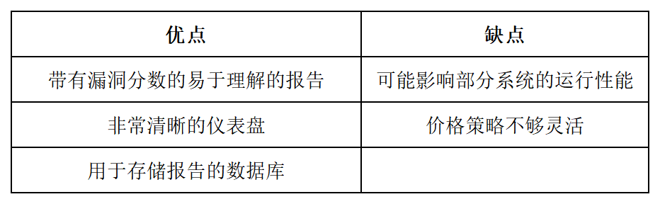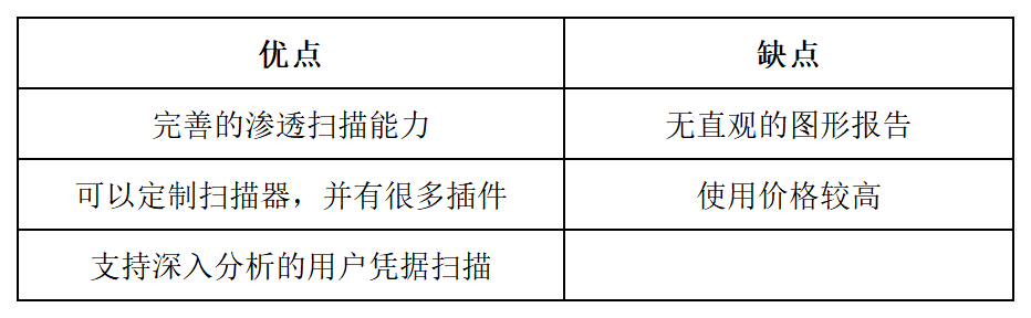 基于实际风险的评分 可与Metasploit集成 强大的分析报告功能 自适应安全性分析 |