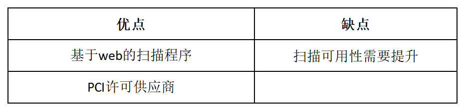 可用于日常性漏洞扫描 基于Web的管理工具 带有PCI扫描工具 |