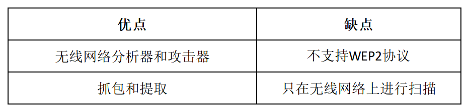 分析WiFi网络的弱点 识别对WiFi设备的捕获和注入 嗅探无线数据包 恢复丢失的密钥 |