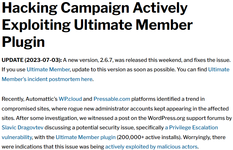 近日,网络安全研究人员发现广泛使用的WordPress网站的Ultimate Member插件(用于简化用户注册及登录流程)存在0day漏洞,该插件目前已安装在全球超过20万个活跃网站上。