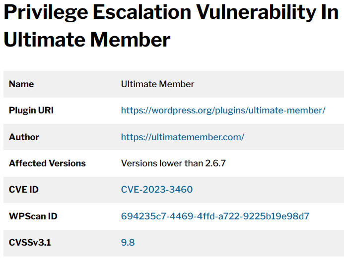 该0day(CVE-2023-3460,CVSSv3.1评分9.8)使得黑客能够在目标网站上获取提升的权限,可能导致未经授权的访问以及对受影响网站的控制。更严重的是,已经有攻击者在利用此漏洞进行攻击。