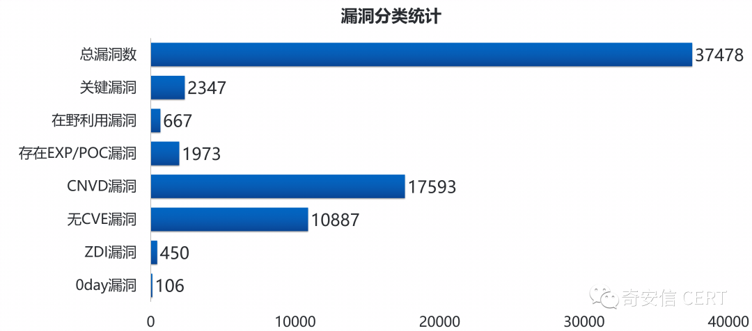 在谈奇安信的漏洞情报之前,我们先来了解一下当前网络安全漏洞的图景,因为这会直接影响我们对于漏洞情报的运营思路。我们选取了部分关心的漏洞信息维度,对2020年到2021年时间跨度为一年半的37478个漏洞进行了分析。