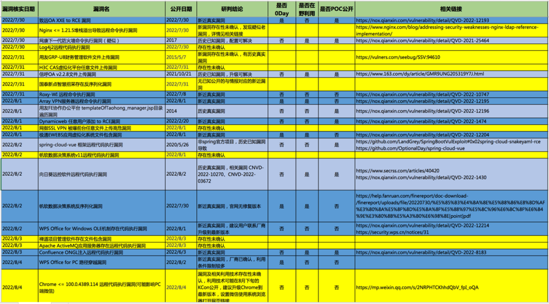 第四,发现关键漏洞的在野利用案例。出现实际的在野利用,是漏洞从潜在威胁转化为现实威胁的重大转折点,一旦监测到需要立即通知用户尽快采取措施修补处置。