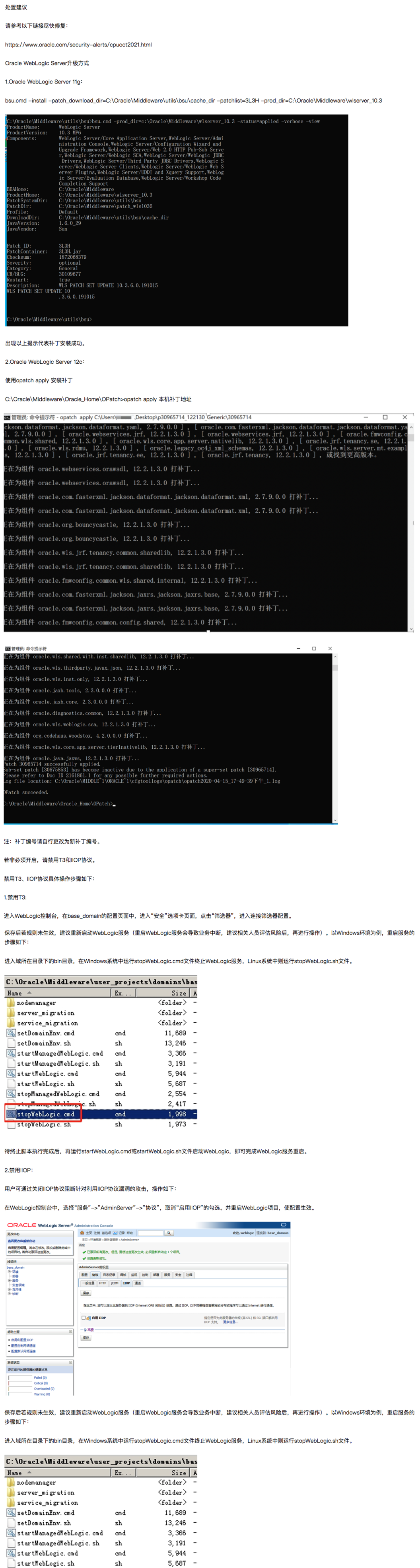 因此对于很多重要漏洞,需要组织技术团队开发主机或网络虚拟补丁,寻找通过调整机器配置暂时规避漏洞利用的临时解决方案,输出经过验证的step-by-step 的操作步骤,帮助客户迅速上手进行风险规避,以后在合适的时机进行彻底修复。这里是对一个Weblogic漏洞进行修补操作的详细步骤描述的例子。