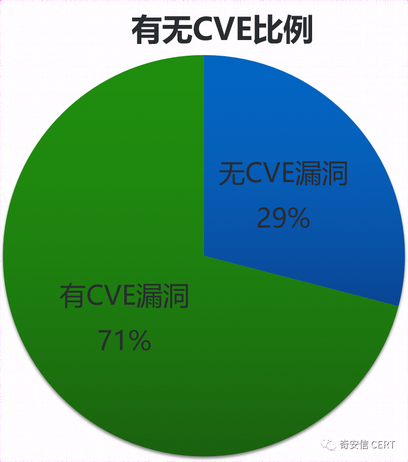 简单做些比例计算,先看下CVE对已知漏洞的覆盖度,可以看到无CVE ID的漏洞占到了三分之一。