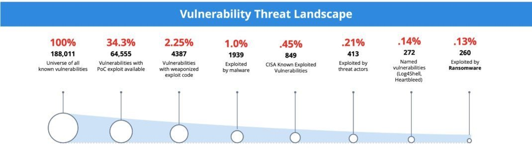 真正观察到被野外利用的漏洞部分,只占总量的1.8%左右。