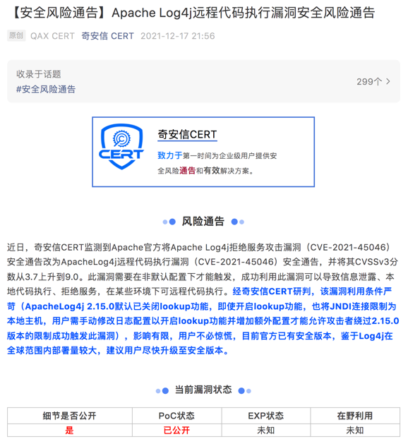 漏洞运营的目标也不仅仅告诉用户哪些漏洞关键,同样重要的,需要告诉用户哪些看起来高危的漏洞所对应的风险名不副实。典型的例子还是2021年12月爆发的Log4j漏洞,当时在网络上掀起了腥风血雨。