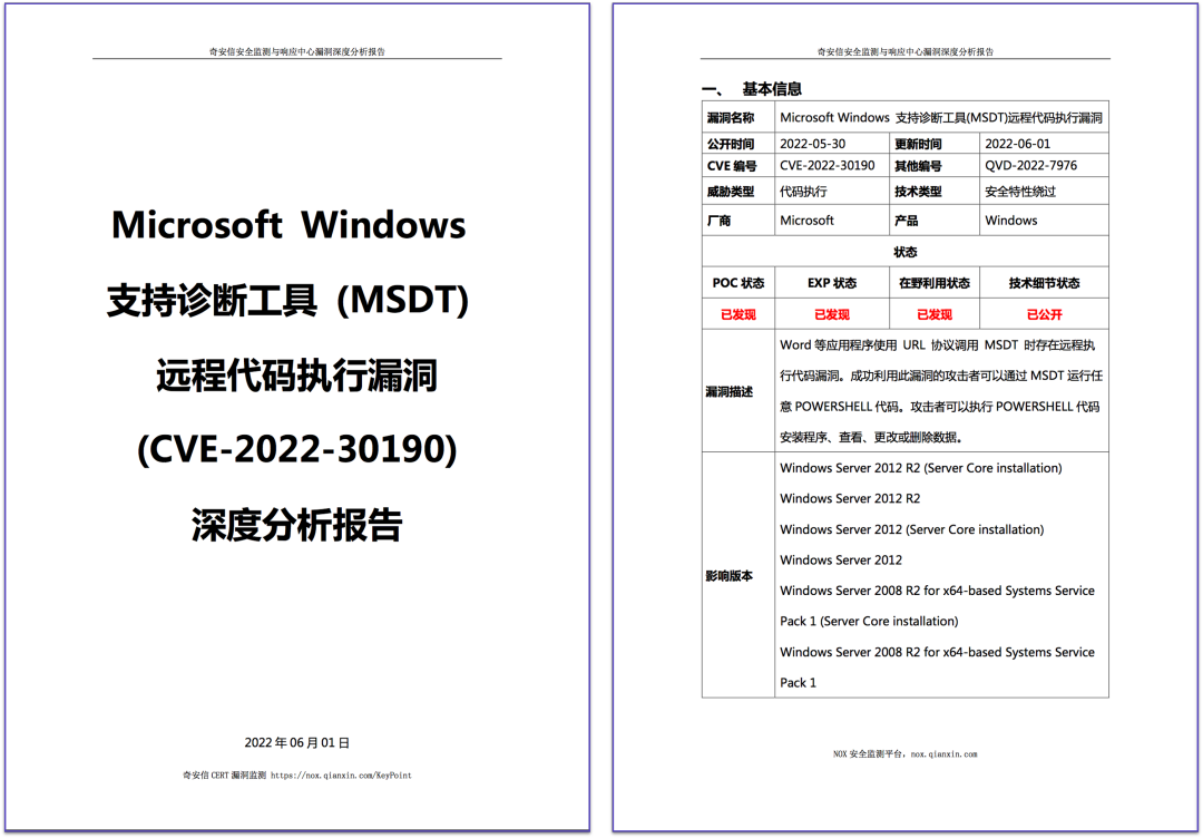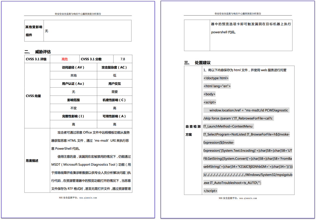 对于过滤出来的重要漏洞,我们则会尽可能地去完善其技术信息。这里是我们对微软支持诊断工具漏洞的深度研判报告。