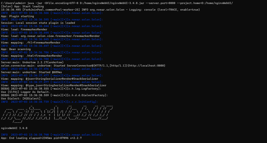 java -jar -Dfile.encoding=UTF-8 D:/home/nginxWebUI/nginxWebUI-3.4.8.jar --server.port=8080 --project.home=D:/home/nginxWebUI/