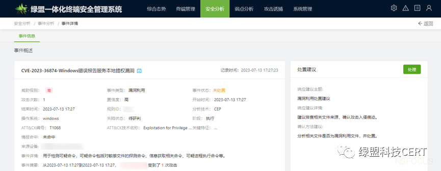【安全通告】Windows错误报告服务权限提升漏洞(CVE-2023-36874)