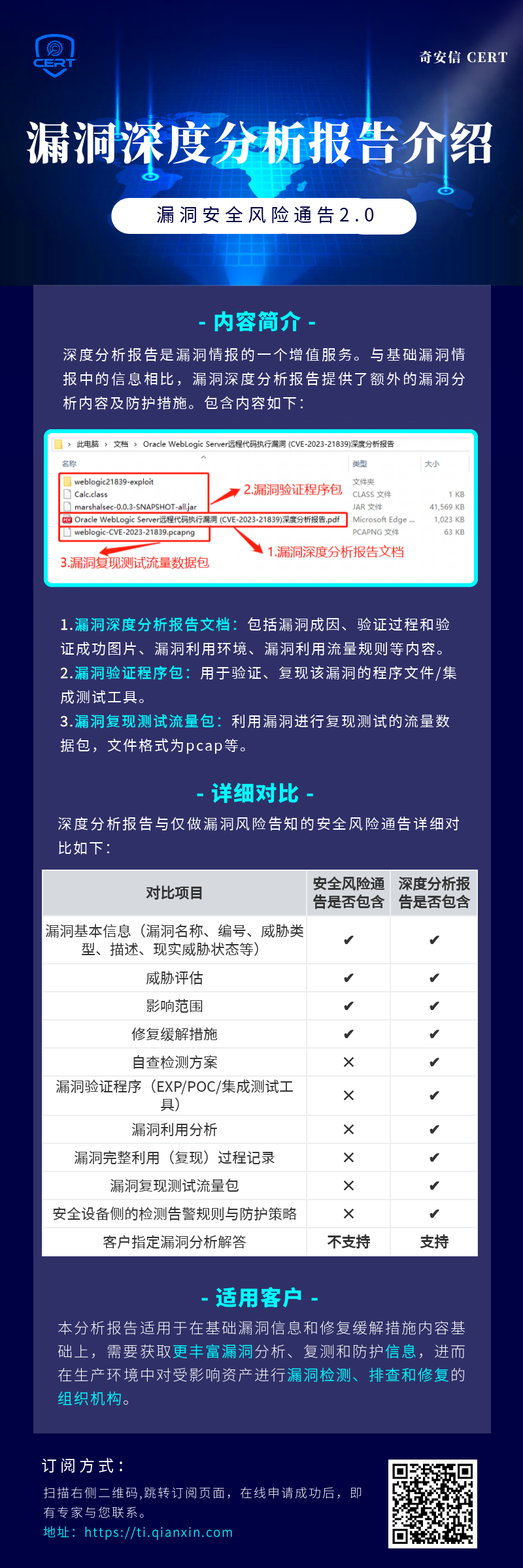 深度分析报告(含PoC和技术细节)已开通订阅,扫描图片
