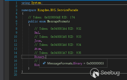 由于金蝶云星空能够使用 format 参数指定数据格式为二进制,攻击者可以通过发送由 BinaryFormatter 恶意序列化后的数据让服务端进行危险的 BinaryFormatter 反序列化操作。反序列化过程中没有对数据进行签名或校验,导致攻击者可以在未授权状态下进行服务器远程代码执行。