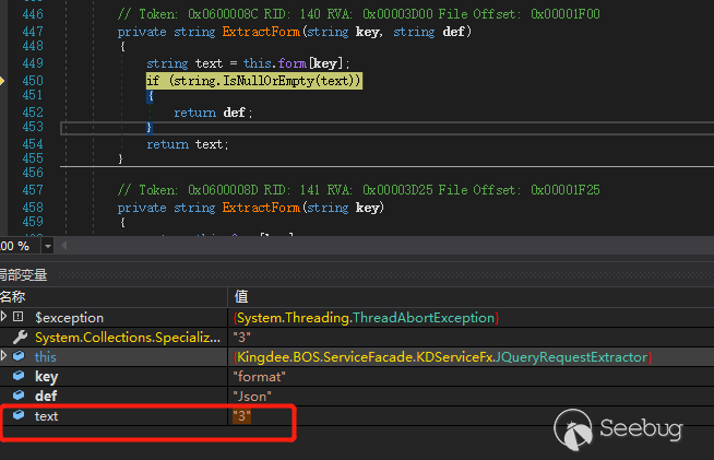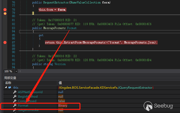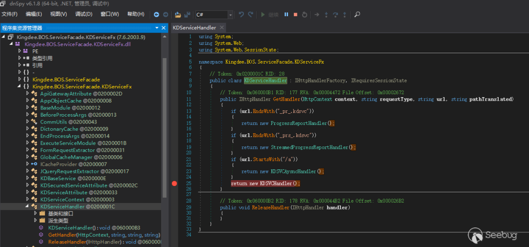 这里直接发上面的数据包进行调试。如果之前配置的 dnSpy 没错,就可以成功断到点了