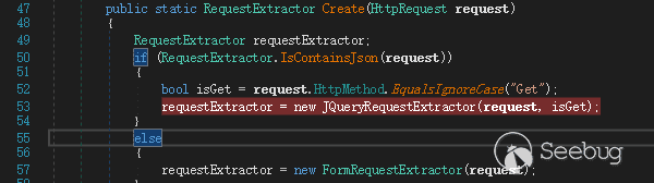 因为 Create 方法中的 requestExtractor = new JQueryRequestExtractor(request, isGet);,其内部会根据 request 传递的值来进行属性的赋值给 this.form,如图 21 所示。