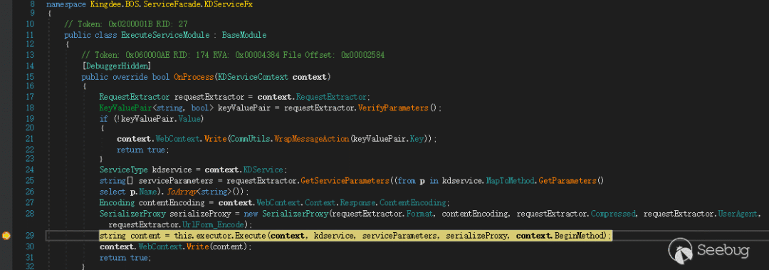 再继续进入到 Execute() 方法内部,可以看到 DeserializeParameters() 方法,如图 18 所示。